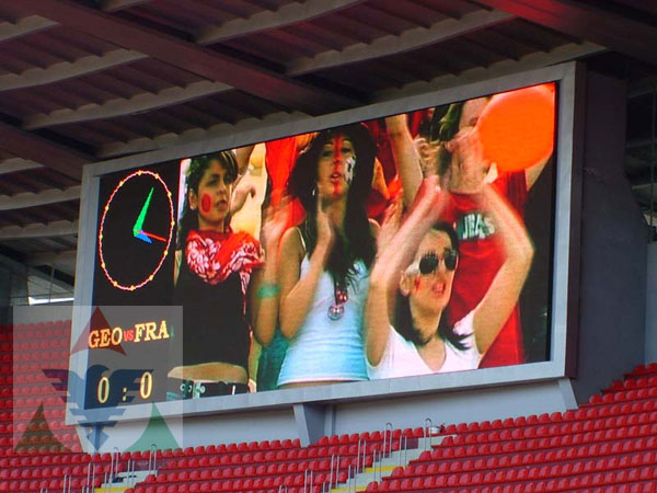 LED顯示屏格魯吉亞項目,采用浙大華泰科技有限公司生產(chǎn)的室外全彩LED顯示屏P10,面積140平方。